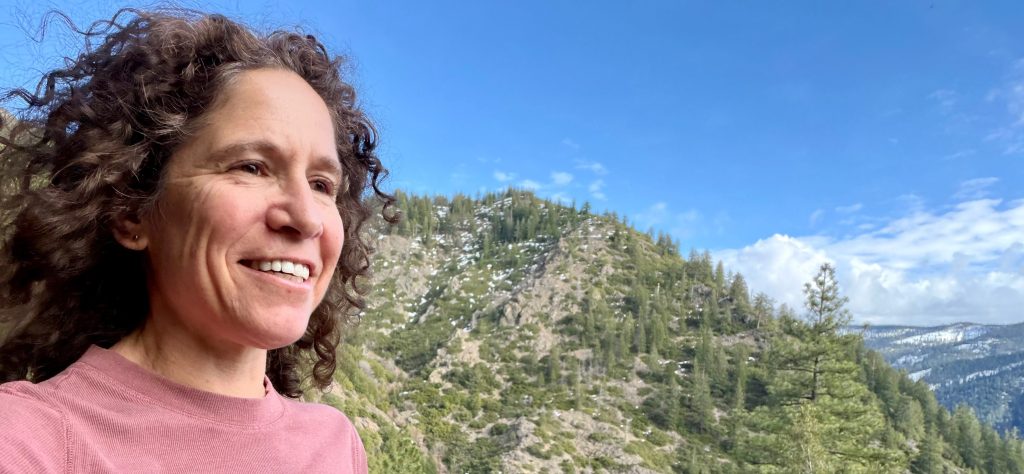 Leah Gillman was born in Oregon, spent her childhood playing in snowy Montana and her teenage years dancing in sunny North Carolina. College and her 20’s was spent in New York where she shifted from her early love of modern dance to the world of cycling and yoga. She moved to the San Francisco Bay Area in 1999 where she began her studies, and then career, as a yoga teacher and bodyworker, and became a mom! Summer backpacking trips became an integral part of life and in 2020, her nest empty, she moved her primary residence up to beautiful Sierra City, CA for the mountainous hiking, biking, lake swimming and a quieter life (think: Northern Exposure with a hint of Deadwood). It wasn’t part of the plan but Sierra City turned out to be ideal for group retreats; yoga combined with: hiking, lake swimming, or… snowshoeing, anyone?