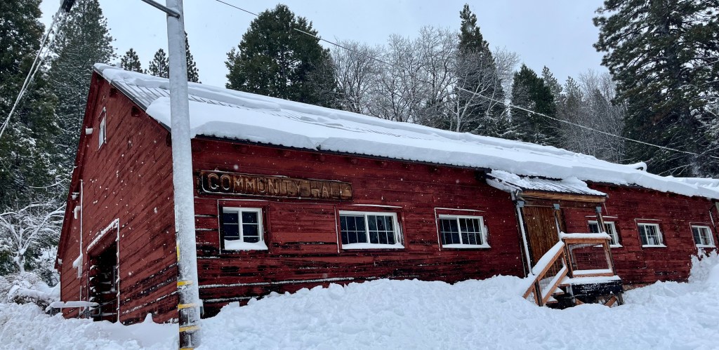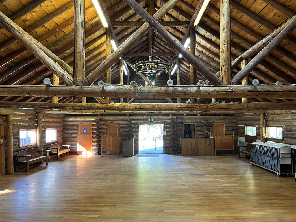The Sierra City Community Hall, in the 2 pictures above, is a sweet, rustic venue located just off Main Street. It’s a grand, 40′ x 50′ room and its ceilings are 22′ high in the center, 13′ at the side walls, so you’ll never feel cramped. It has impressive log construction, beautiful wood floors, and central heat.