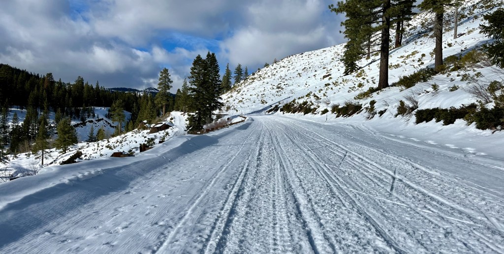 Sierra City is at 4000′ elevation so as the snow line rises and falls throughout winter, the town will vary from lots of snow, to very little snow. No worries, if the snow line is high during the retreat. Just 5 miles away is the Gold Lake Highway, pictured below, which is closed for recreation all winter. It’s at 5,300′ elevation where there is snow cover throughout winter. Yuba Pass, at 6,700′ elevation, another designated recreation area, is just 12 miles away. So, plenty of snow to be had.