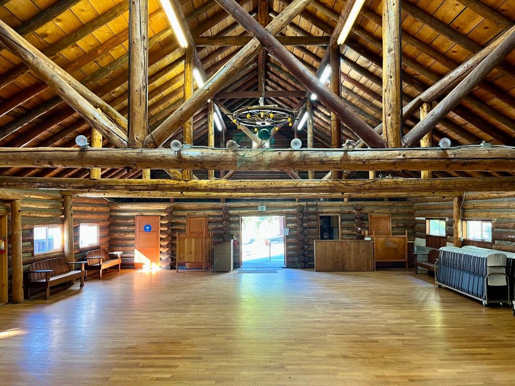 The Sierra City Community Hall is a sweet, rustic venue located just off Main Street. It’s a grand, 40′ x 50′ room and its ceilings are 22′ high in the center, 13′ at the side walls, so you’ll never feel cramped. It has impressive log construction and beautiful wood floors.